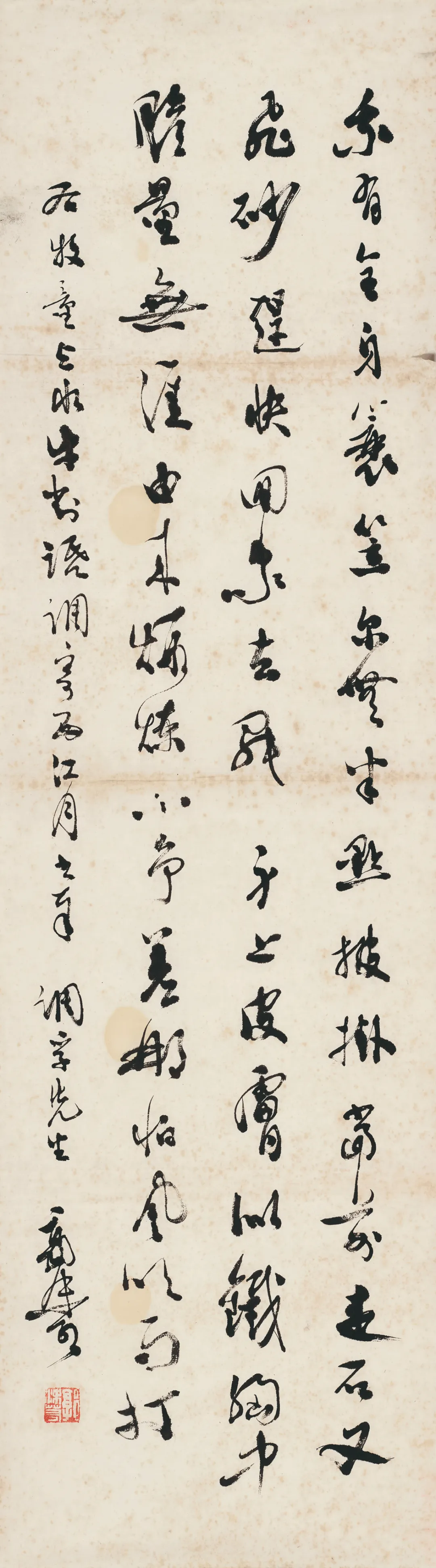 郭沫若(1892-1978)草书西江月 镜心 水墨纸本 6317.5 cm 题识:右牧童与水牛对话。调寄西江月。书奉调孚先生,郭沫若。