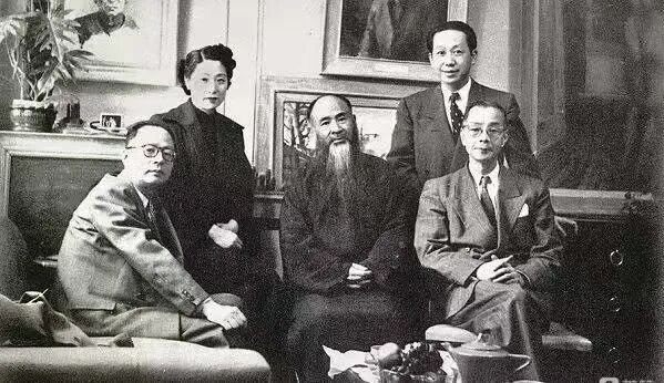 张大千(中)与王季迁(左一)、郑元素(左二) 等友人