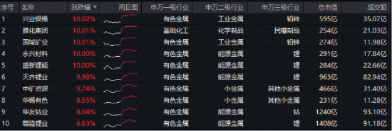 图:有色龙头ETF标的指数涨幅前10大成份股