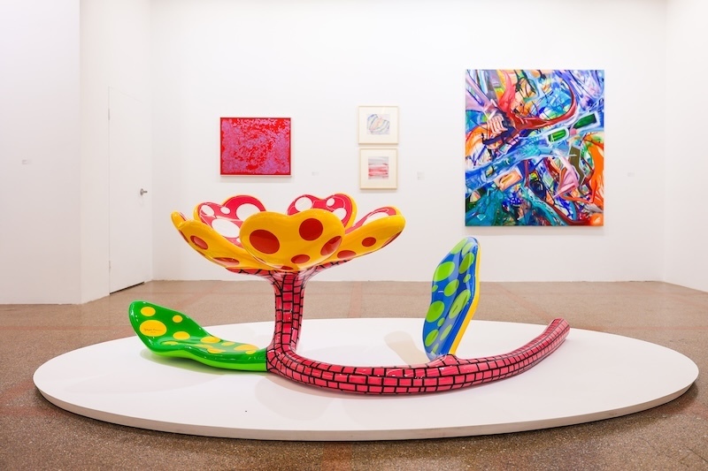 卓纳画廊对面的是里森画廊展位上的朱利安奥培的标志性行走人物为展区带来了动态活力。不远处,大田秀则画廊展区,草间弥生的雕塑作品更为亮眼。这一画廊今年重点呈献艺术家曼纳特甘多特拉(Mannat Gandotra)的绘画。记者观察到,展会中不少画廊呈现了绘画作品,而在一些大尺幅的、带有强烈视觉冲击的作品前,不少参观者选择了合影留念。