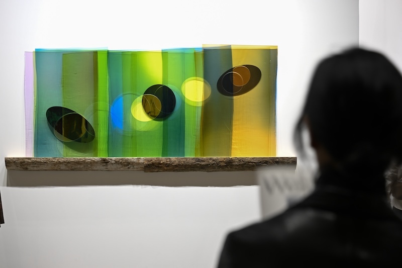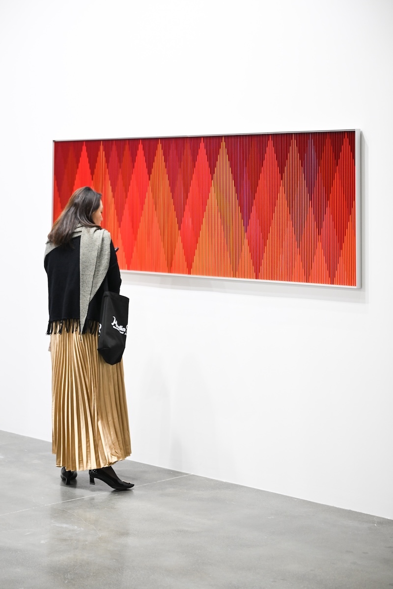 而在常青画廊的展位,则被五彩缤纷的“能量”包围。除了安东尼葛姆雷、阿尼什卡普尔等艺博会的常客外,在北外滩航运中心留下永久项目的法国籍委内瑞拉艺术家卡洛斯克鲁兹-迭斯,其通过材质与绘画的精密结合,将艺术的科学性、逻辑性熔于一炉。在常青画廊总监彭咏仪看来,西岸艺博会不仅是一个交易平台,更具有深远的文化与教育意义:“我一直觉得,艺术博览会不只是销售与收藏,更是一种美育的过程。它能培养公众的审美意识,吸引更多年轻一代去关注艺术、理解艺术。”