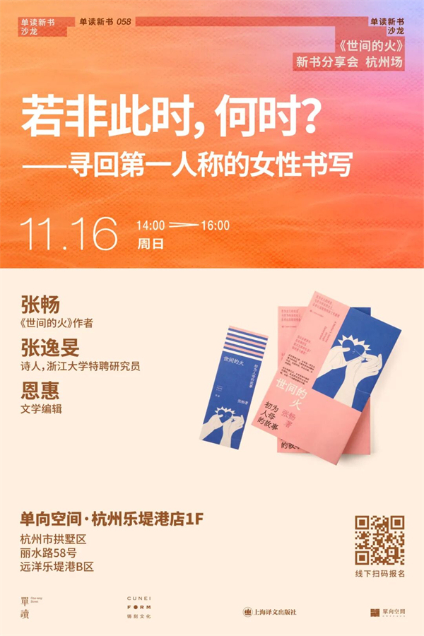 杭州|若非此时,何时?——寻回第一人称的女性书写:《世间的火》新书分享会