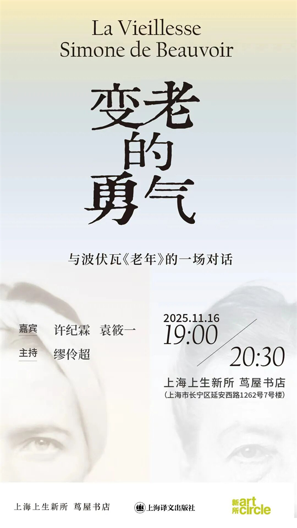 《老年》是波伏瓦并肩《第二性》的社会观察和研究经典,作者将视线投向“老年意味着什么”以及“老年人在社会中的地位”,从历史、文学、社会学、哲学、人类学、生物学、医学等角度探讨自古以来人类社会对老年的看法和观点,指出关于老年的诸多“神话”或刻板印象由何而来;同时着力于描绘老年人的境况和他们的生存状态,揭示出老年的真实面貌。11月16日,我们邀请上海社会科学院文学研究所所长、华东师范大学外国语学院教授袁筱一,华东师范大学紫江特聘教授、历史系博士生导师、教育部人文社会科学重点研究基地中国现代思想文化研究所副所长许纪霖,以及上海译文出版社编辑缪伶超,一起谈谈波伏瓦这部重要的社会观察和研究经典。
