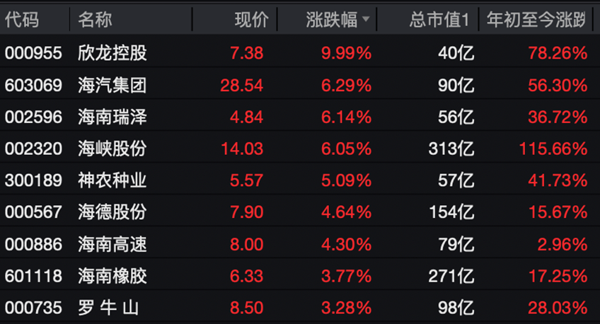 海南自贸区个股方面,录得20cm涨停,、、涨停,、、、、、等跟涨。