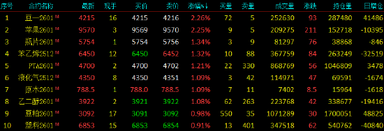 2025年11月14日,国内期货主力合约涨跌不一。、涨超2%,(EB)、瓶片、、(LPG)、原木、(EG)涨超1%;跌幅方面,跌超2%,、、、、、、集运欧线跌超1%。