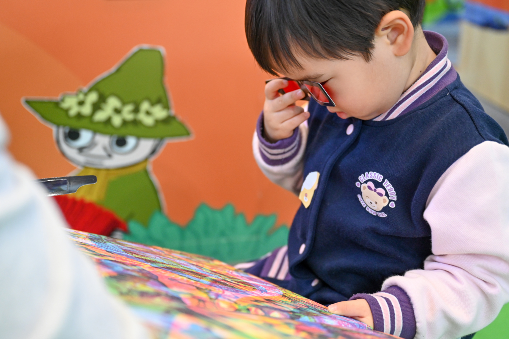 小朋友通过眼镜看绘本。澎湃新闻记者 朱伟辉 图
