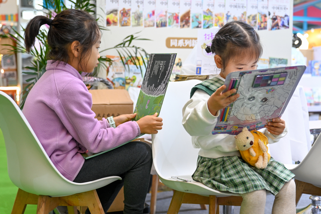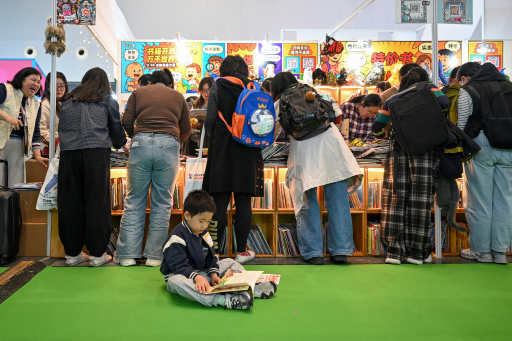 2025年11月14日,上海世博展览馆,小朋友在看绘本。澎湃新闻记者 朱伟辉 图
