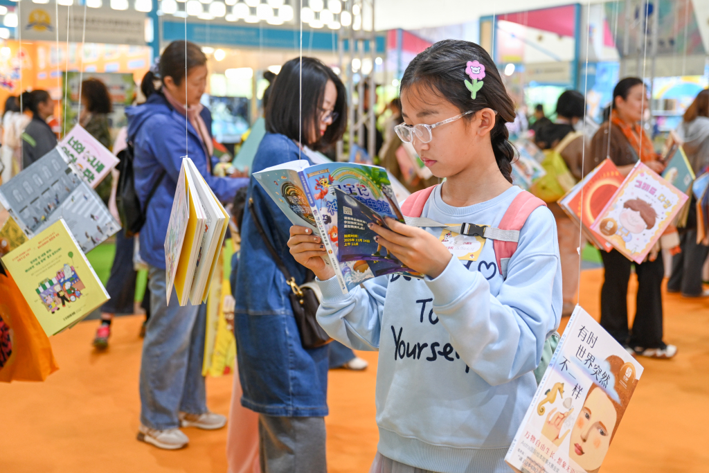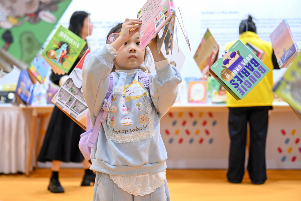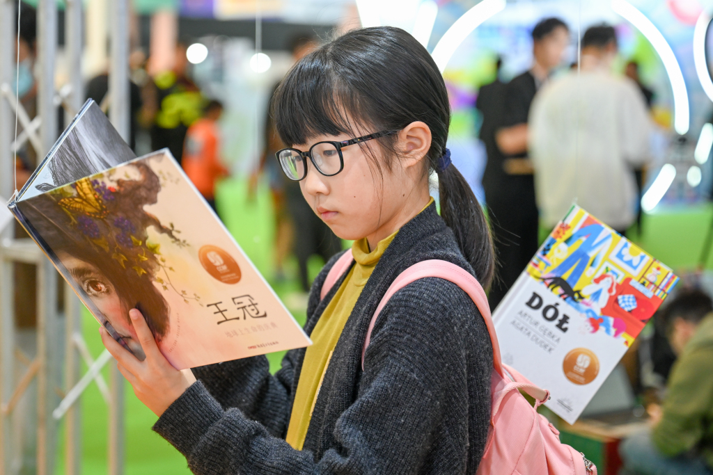 小女孩在看全球首发童书。澎湃新闻记者 朱伟辉 图