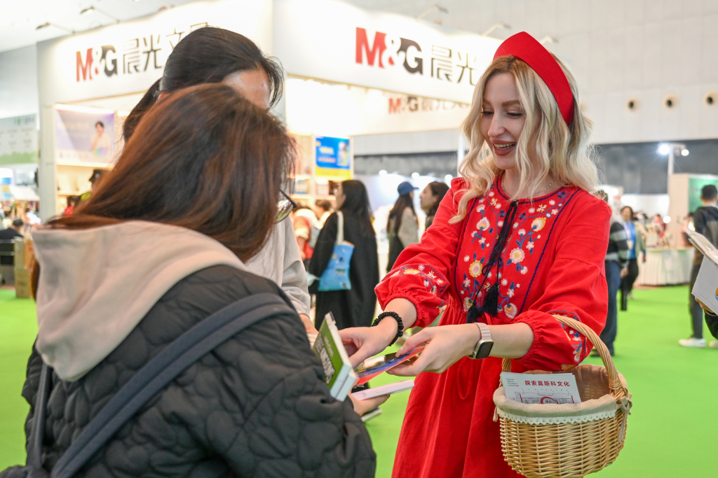 俄罗斯出版商在现场派发巧克力。澎湃新闻记者 朱伟辉 图