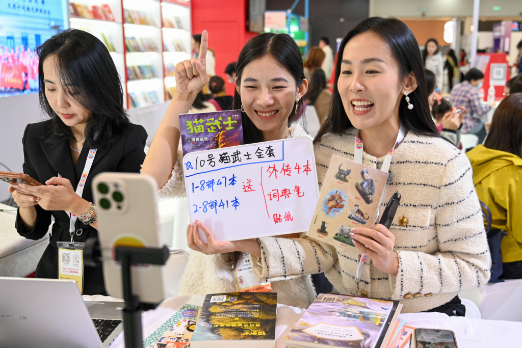 展商在直播卖书。澎湃新闻记者 朱伟辉 图