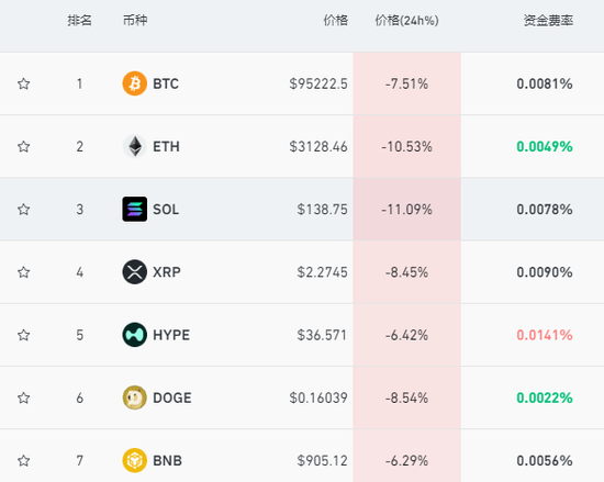 比特币等加密货币也未能幸免,比特币跌破96000美元,跌幅超7%,以太坊更是跌超10%。