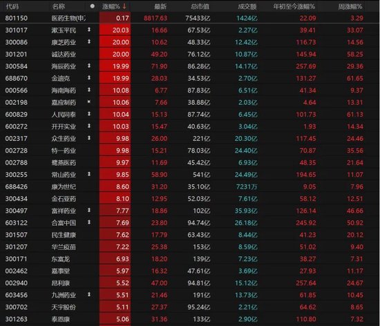 15只医药生物个股涨停,、、、、“20cm”涨停,、、、、、等个股涨停。