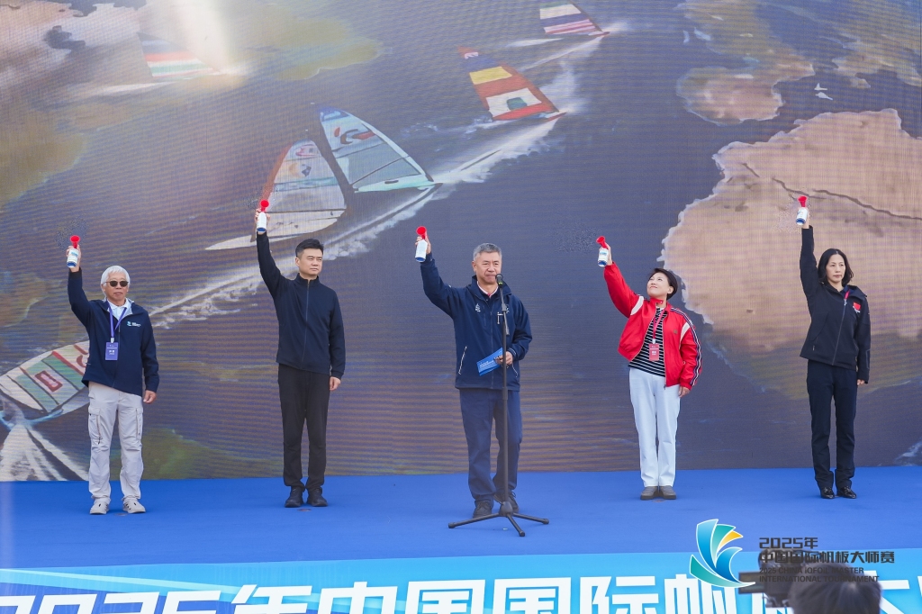在全体嘉宾和观众的注视下,运动员与裁判员代表郑重宣誓,承诺将以公平、公正、专业的精神参与和执裁赛事。随后,世界帆船联合会主席李全海宣布开赛,并与现场领导、仲裁主席一起鸣笛示意,标志着2025年中国国际帆板大师赛正式开赛。