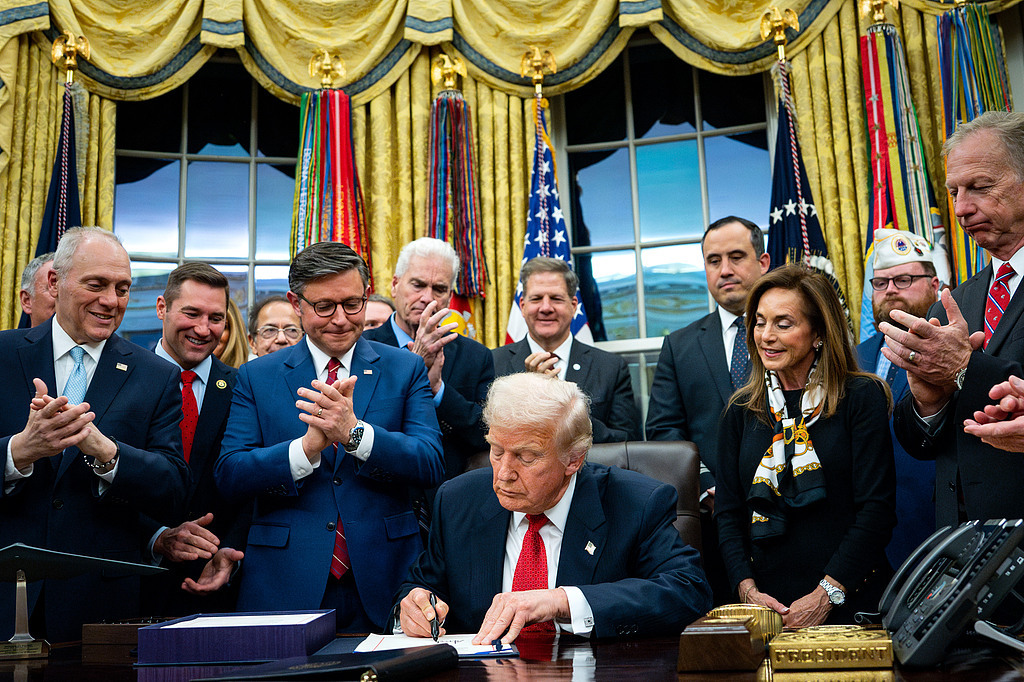 当地时间2025年11月12日,美国华盛顿,美国总统特朗普在白宫椭圆形办公室签署政府拨款法案,以结束美国政府停摆。