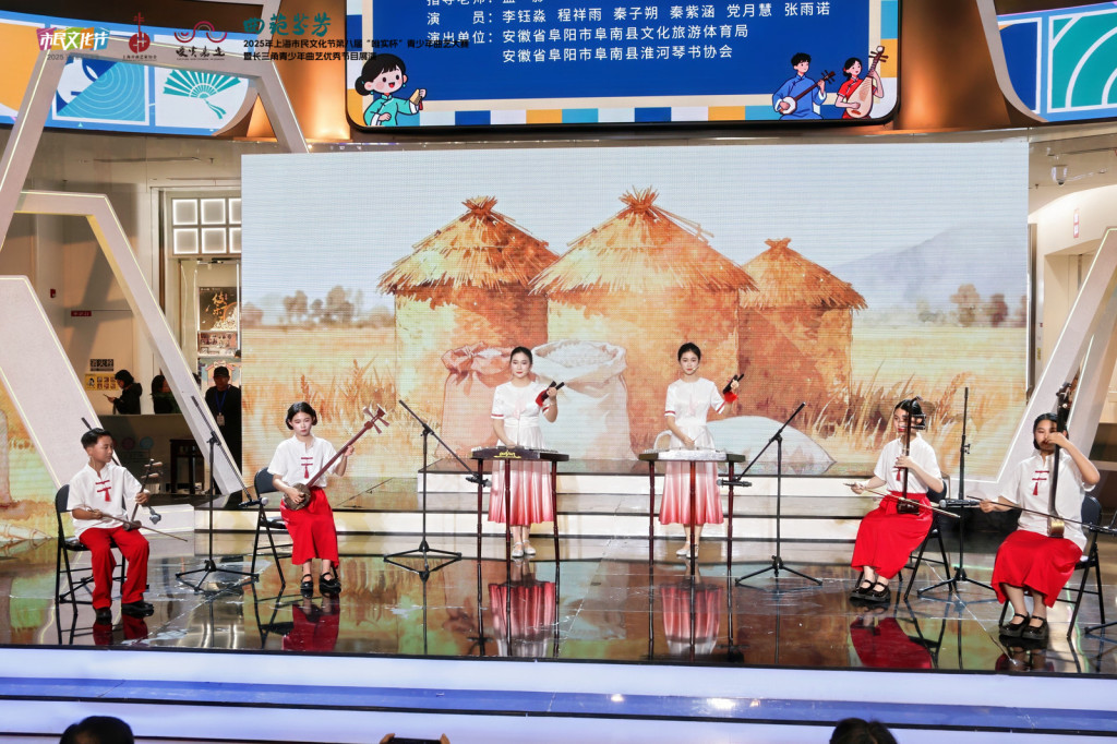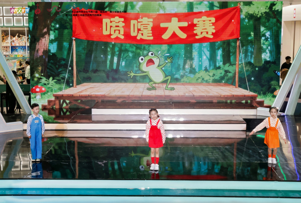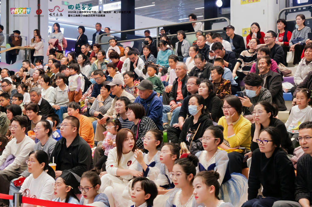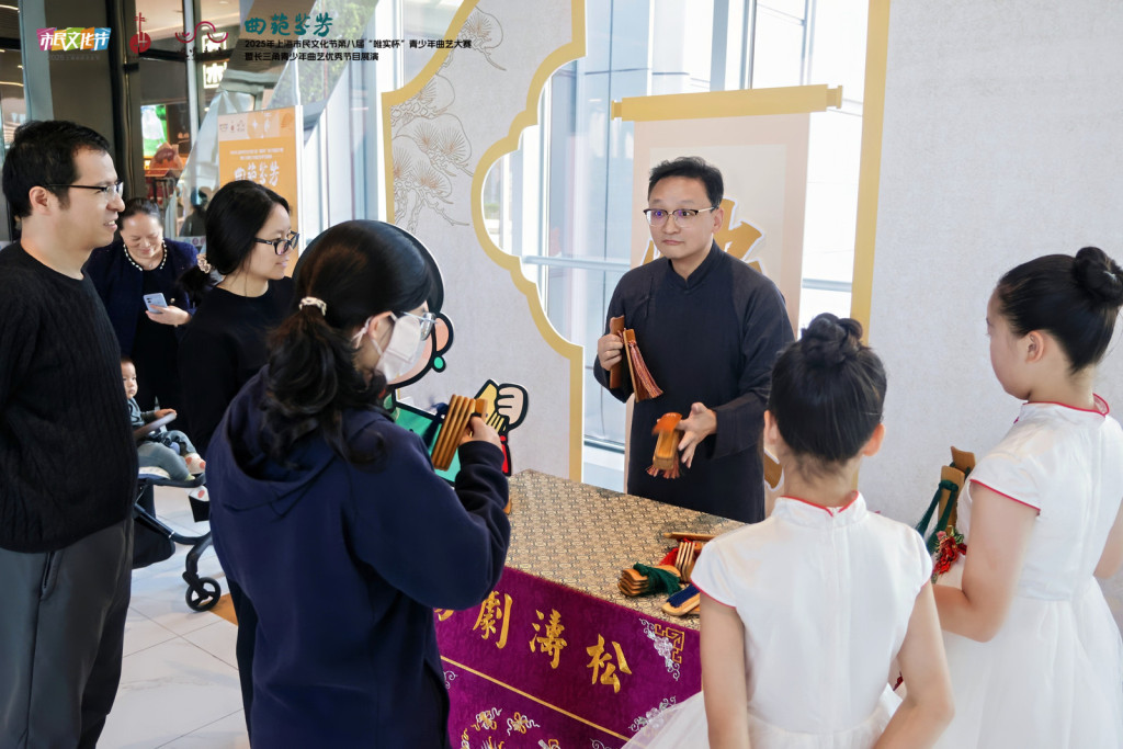11月16日,上海市嘉定区嘉亭荟城市生活广场内传来浦东锣鼓书《升国旗》的铿锵节奏,2025年上海市民文化节第八届“唯实杯”青少年曲艺大赛暨长三角青少年曲艺优秀节目展演在这里上演。