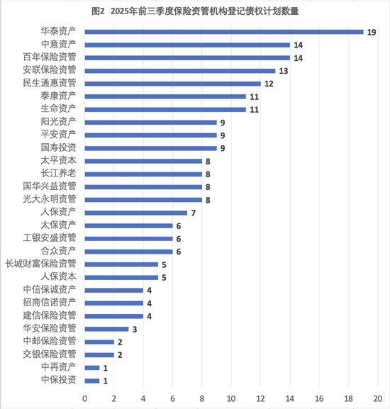 数据显示,2022年保险债权投资计划新增485只,新增规模8712亿元,同比分别减少8.1%、9.9%。2024年,债权投资计划375只、规模6177.33亿元,同比分别较少15.54%、16.03%。今年前三季度,28家保险资管机构共登记债权投资计划209只、新增规模3211.2亿元。截至三季度末,存续规模约1.58万亿元,较2024年末减少10%。