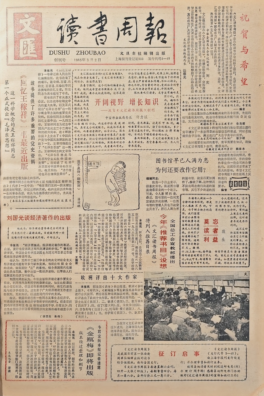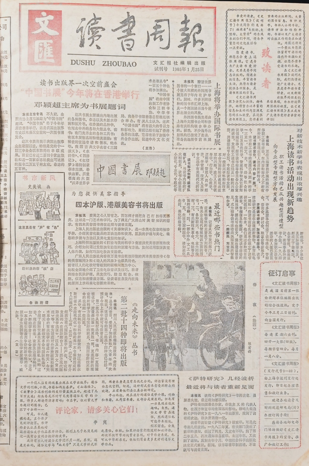《文汇读书周报》从提议、酝酿到正式出版,也可谓是“马达速度”。从提议创办到试刊不到两个星期。1985年1月25日出试刊号,3月2日出创刊号,自此每周一期。