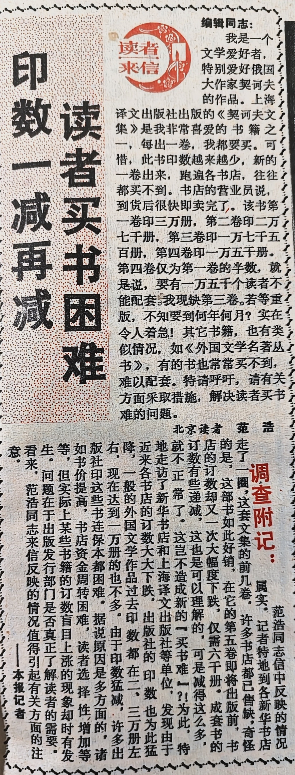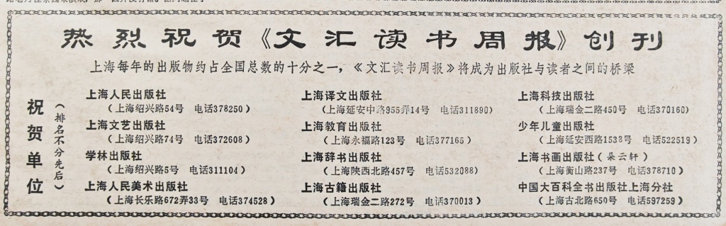 这种繁荣带来了两个新的需求。第一,读者迫切需要图书出版的信息。《文汇报》此时已有一个专刊,名曰“读书与出版”,主要报道书讯,刊载书评,也可算是后来《文汇读书周报》的前身吧,当时深受读者欢迎。第二,出版繁荣活跃了,需要提升质量,这就必须要有更多书评作导向。这种导向不仅面向出版者,也面向读者。这样的出版文化背景,孕育了一张专业性的读书报。