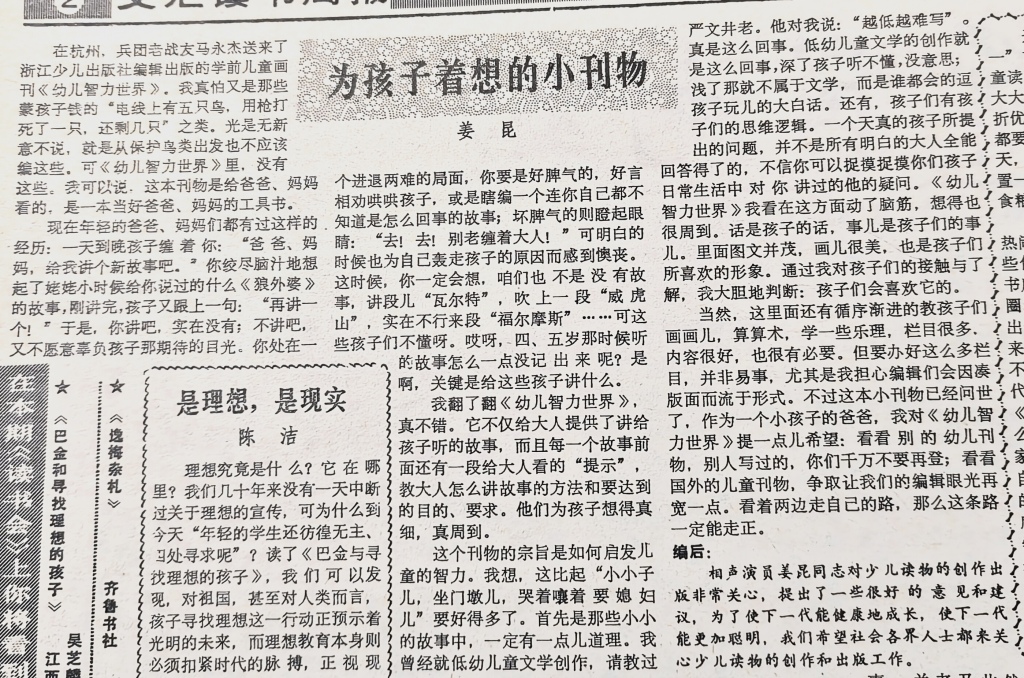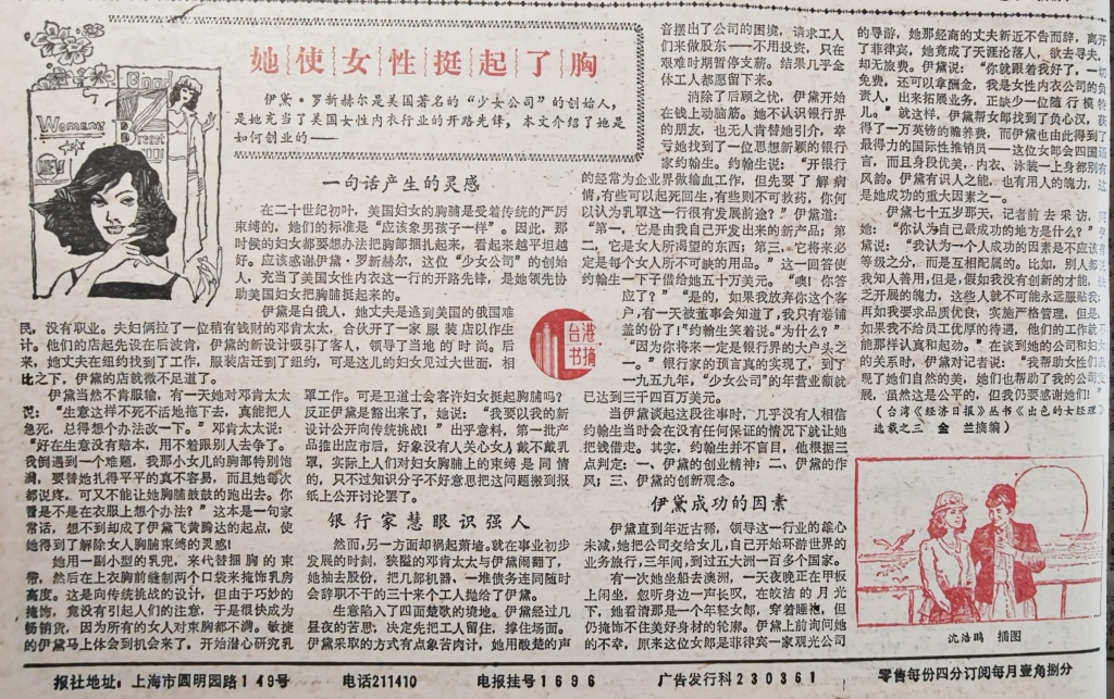 我们也有“书摘”栏目。我开玩笑说,也许我们是最早在主流报纸上刊登书摘的一家。那时我们思想很解放,你们知道第三期的书摘选了什么吗?《她使女性挺起了胸》——那是一篇介绍美国女性内衣行业开拓者如何创业的文章。我们之所以选这一篇,是希望体现一种百科全书式的知识视野,同时也贴近现实生活。我们还专门刊登港台书摘。谁要是去深圳出差,就会被我们嘱咐:去看看那边书店有些什么好书,带几本来。那时脑子灵,点子也多。