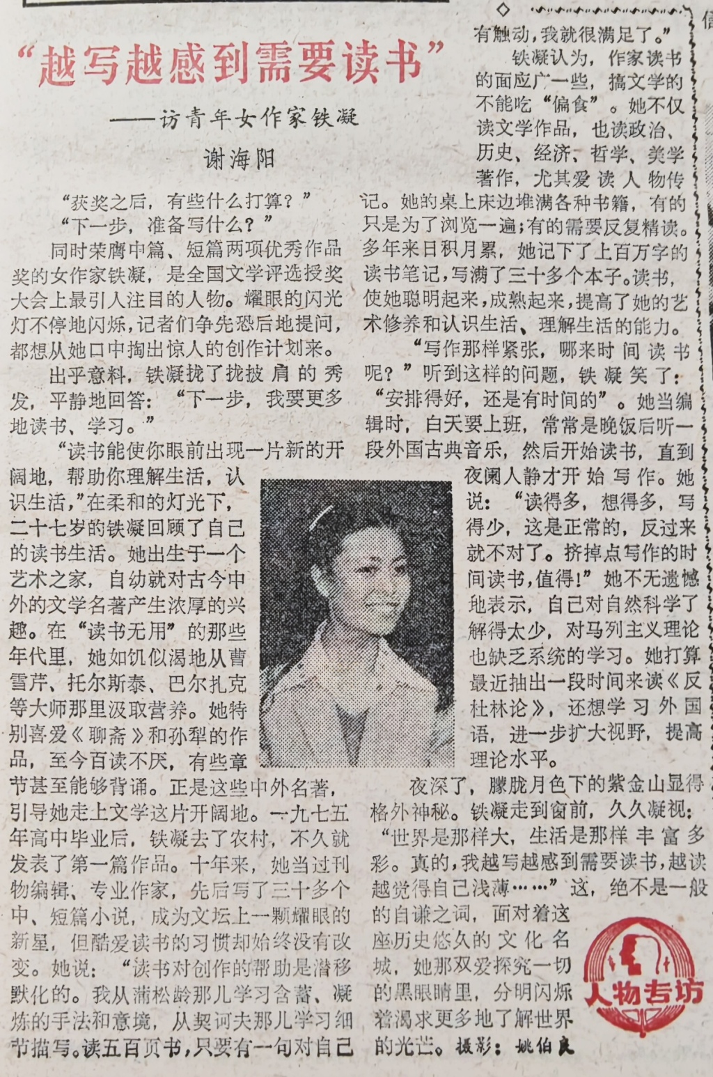 谢海阳:《“越写越感到需要读书”——访青年女作家铁凝》