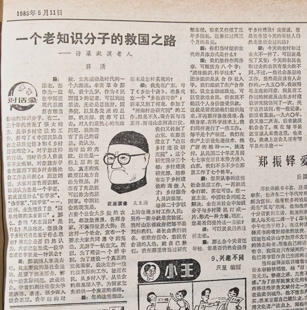 薛涌:《一个老知识分子的救国之路——访梁漱溟老人》