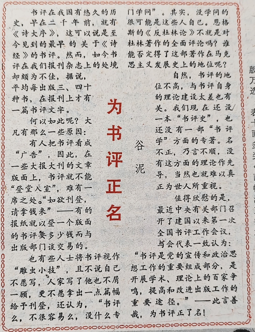褚钰泉是复旦中文系的老大学生;我同样毕业于复旦,文艺评论出身;张晓明与许多老作家交往密切,他自己的散文写得相当出色。有时我们三个人也在《读书周报》上写稿,或开专栏,用的都是笔名——褚钰泉叫“阿昌”,张晓明用“晓明”,我用“谷泥”。三人配合非常默契。