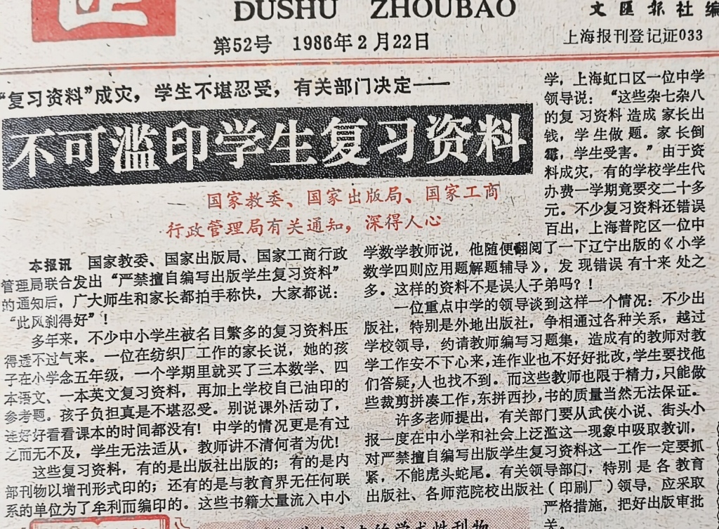 本报讯:《“复习资料”成灾,学生不堪忍受,有关部门决定——不可滥印学生复习资料》
