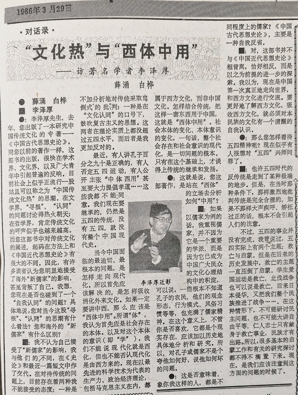 薛涌、白桦:《“文化热”与“西体中用”——访著名学者李泽厚》