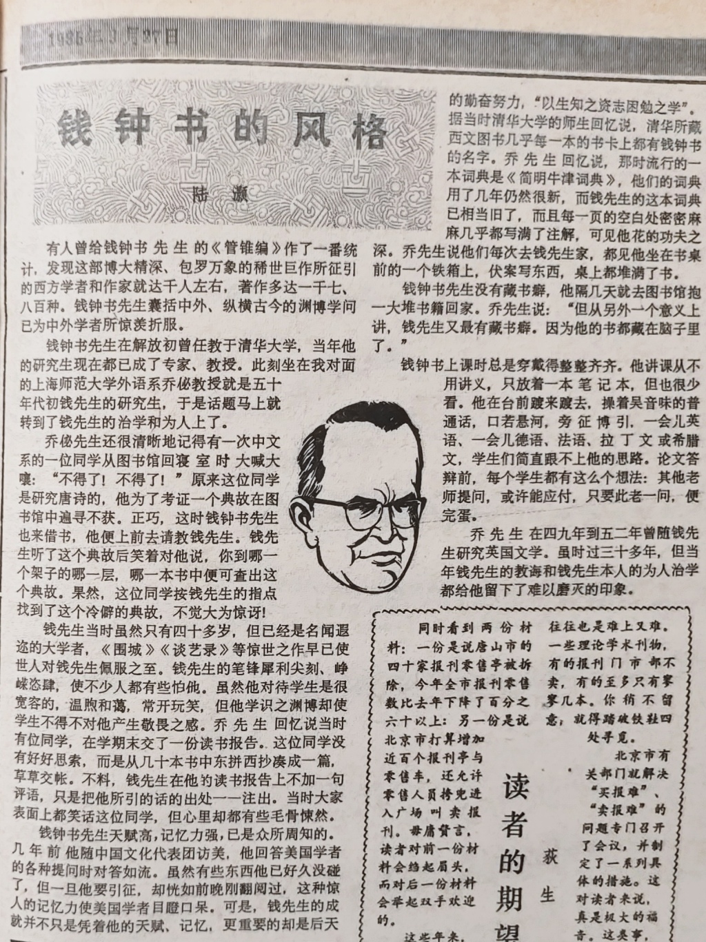 正好在这个时候,《文汇报》办的新闻班刚刚培养了一批青年人,他们常来《读书周报》聊天,有的也参与周报的采编工作。比如后来担任《文汇报》总编辑的郑逸文,还有陆灏,都为《读书周报》贡献了不少精彩的文章。