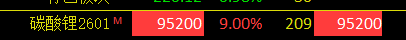 期货主力合约触及涨停,涨幅9%,报95200元/吨。