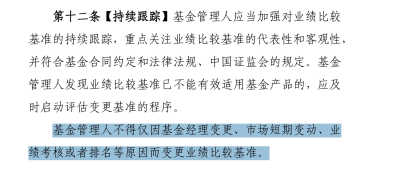 此外,为防止基金管理人通过频繁变更基准来掩盖投资失误,《指引》明确禁止仅因基金经理变更、市场短期变动、业绩考核或排名等原因变更基准。业绩基准确需变更的,必须履行相应的程序和披露义务。