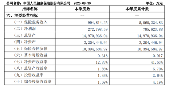 同时,资产规模的稳步扩张,也为其高速发展筑牢根基。截至2025年9月末,人保健康总资产达1497.09亿元,较年初增长约6%;净资产更是突破230.44亿元,较年初大幅增长57.4%。
