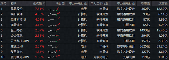图:科创人工智能ETF(589520)标的指数涨幅前10大成份股