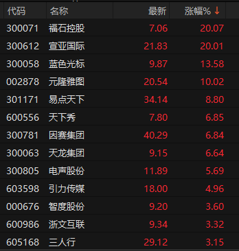 广告营销概念早盘涨幅排名