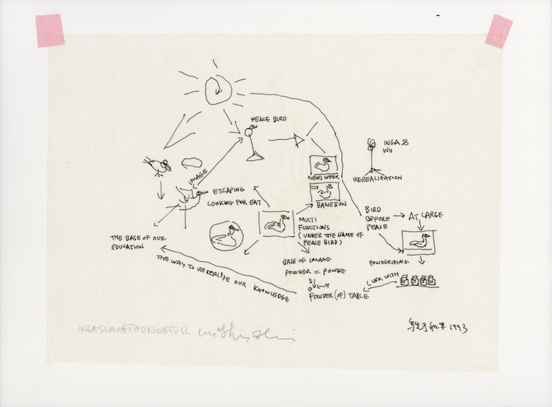 在艺术周中,最值得关注的要数吴山专与英格斯瓦拉托斯朵蒂尔个展“鸟先于和平”。吴山专与英格斯瓦拉托斯朵蒂尔是知名的观念艺术家组合。这一展览以“鸟先于和平” 为题眼,呈现千余件相关作品与手稿,来回顾了两位艺术家近四十年的合作实践,展示他们如何在幽默与严肃之间,在思想与社会的多重交汇处所提出的问题,及生成的艺术观念。