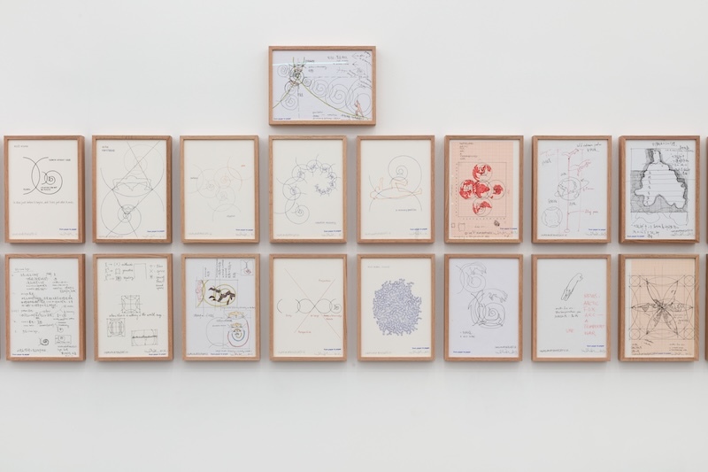 展厅入口处,近600件A4手稿作品顺时针环绕、如“轨道”般贯穿整场展览,将数十个吴山专与托斯朵蒂尔创作中的重要概念及其演进尽收其中。之后,前厅的数十个多彩霓虹灯logo,勾勒出了此次展览所涉及的创作线索。
