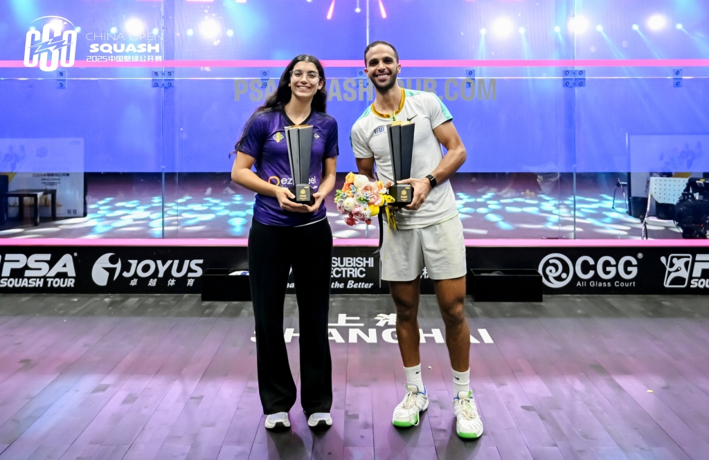 上个周末,2025中国壁球公开赛在久事体育场馆仙霞网球中心落下帷幕。6天时间,这场赛事不仅见证了埃及选手穆罕默德阿布埃尔加(Mohamed Abouelghar)和阿米娜奥尔菲(Amina Orfi)捧起男女单打的金杯,而且将世界顶级运动员带进了上海的弄堂和商圈,让更多人开始了解甚至是亲身体验壁球的魅力。