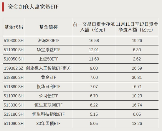 Wind数据显示,11月14日、11月17日两个交易日,ETF市场整体净流入超过300亿元。