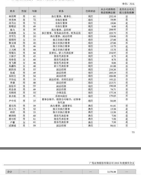 2024年年报显示,公司董事、监事和高级管理人员2024年报酬总额3,176.48万元。董事长、执行董事林传辉2024年从公司获得的税前报酬总额为232.10万元。执行董事、总经理秦力2024年从公司获得的税前报酬总额为208.95万元,执行董事、常务副总经理、财务总监孙晓燕2024年从公司获得的税前报酬总额为225.75万元,以上人员均未在公司关联方获取报酬。