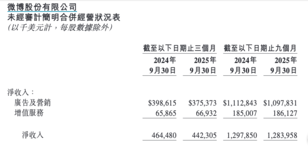 11月18日,微博(Nasdaq:WB,9898.HK)发布2025年第三季度财报。三季度微博总营收4.423亿美元,同比减少5%;非公认会计准则归属于微博股东的净利润为1.1亿美元,同比减少20.47%。