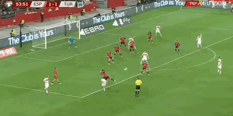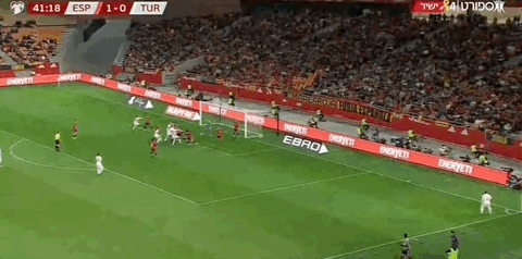 第42分钟,土耳其得到角球机会,禁区内争顶乱战,居尔门前倒地勾射入网,这也是西班牙本届世预选赛第一个失球。