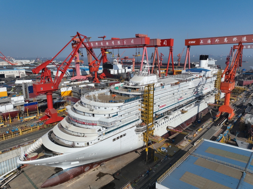 2025年11月14日,上海,国产大型邮轮H1509(爱达花城号)作业现场。视觉中国 图