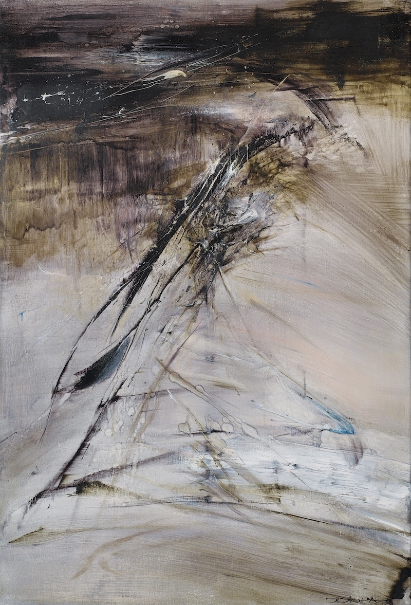 而后,1920年出生的赵无极作品《1.12.64》则展现了其六十年代典型的“狂草式”抽象表达。
