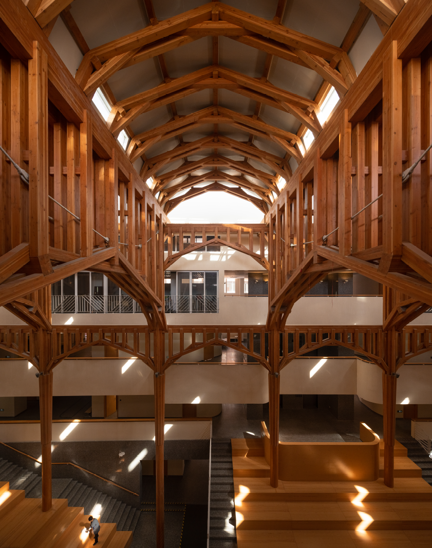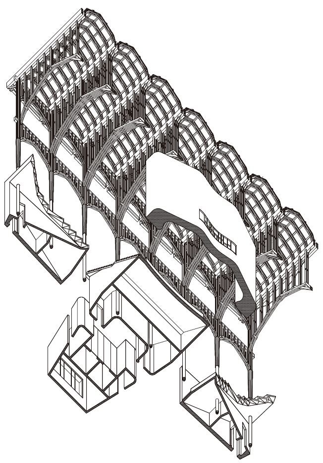 上海交通大学设计学院大堂木结构框架仰视轴测图
