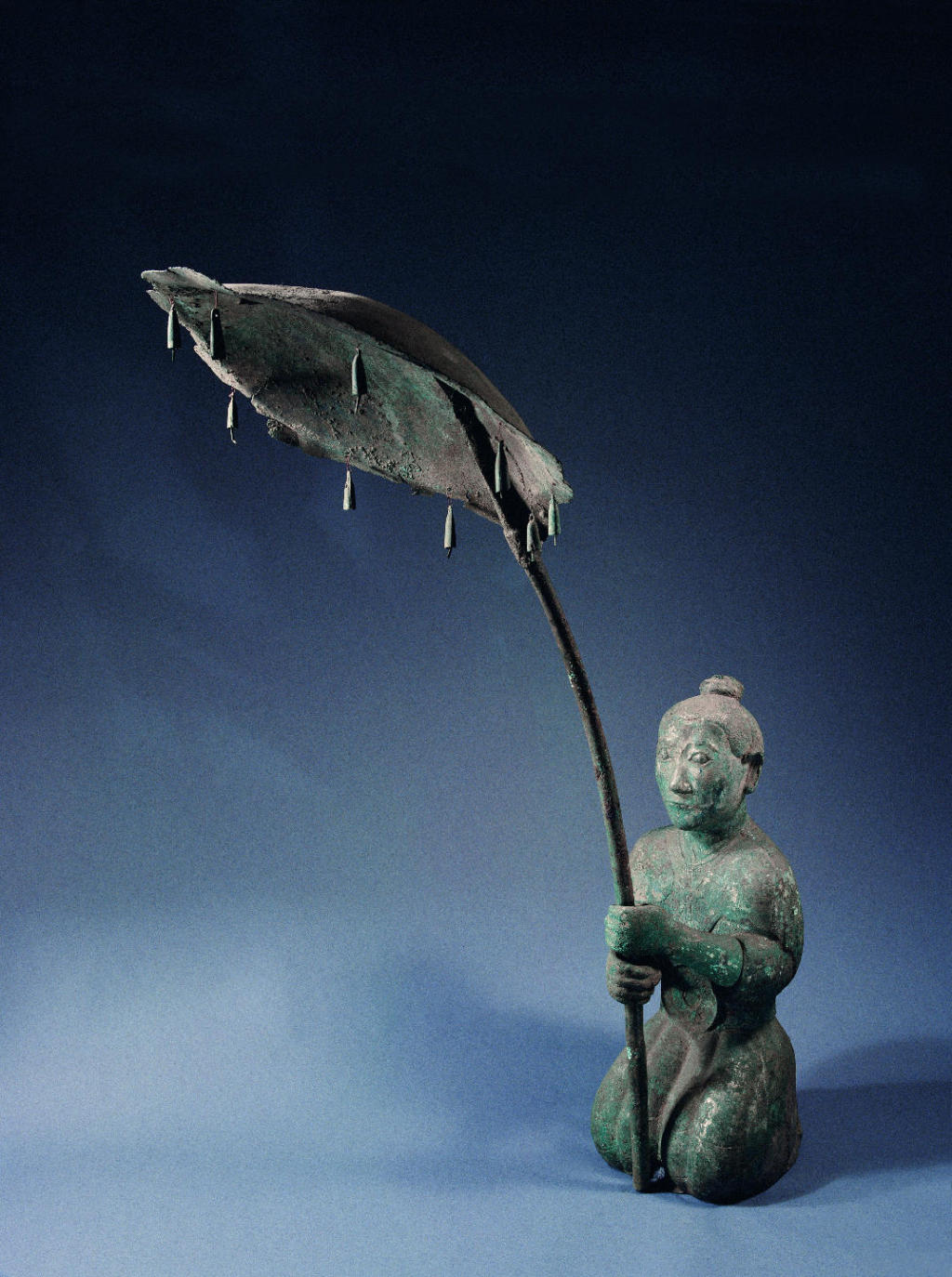西汉持伞男铜俑 云南玉溪江川李家山51号墓出土 云南李家山青铜器博物馆藏