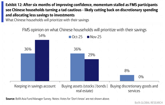 2. 54%的投资者认为中国居民将存款用于储蓄而非投向资本市场,高于10月的36%