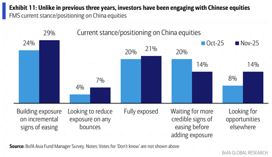 3. 相比10月,更多投资者计划在边际宽松信号后建仓(29% vs. 10月24%);21%的投资者已经满仓,略高于10月的20%