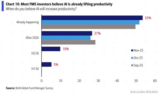3.53%投资者认为AI已提高生产力;20年来首次投资者认为出现过度投资,但并未引起资产负债表担忧