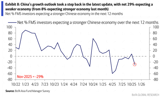 1.认为中国经济未来12个月走强的人减少到-29%(vs. 10月8%)