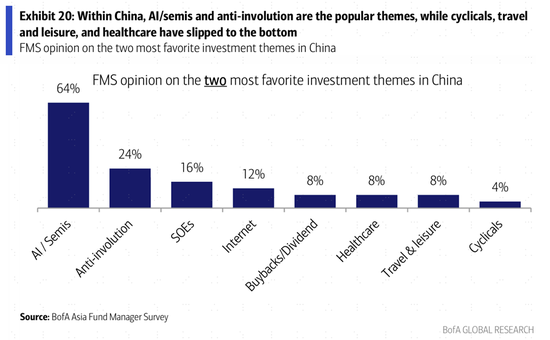 5.中国市场内部,外资最看好的主题中,AI维持第一位,其次是反内卷和国有企业
